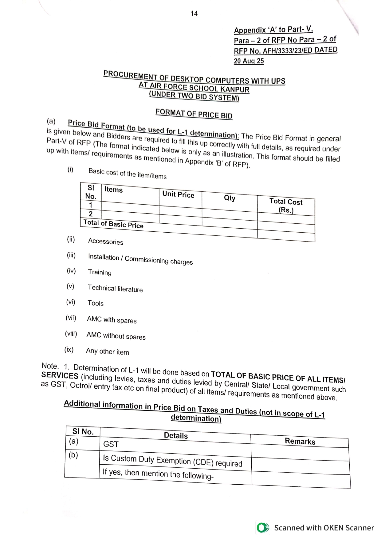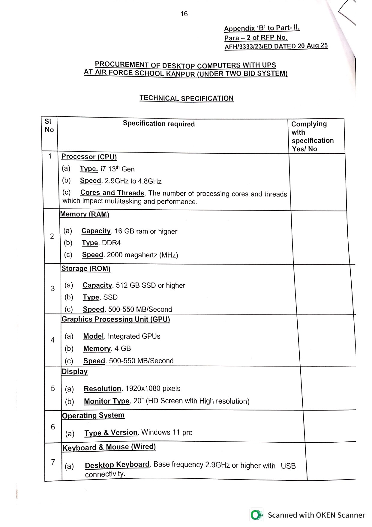 Invitation For Bids For Procurement Of Computers
