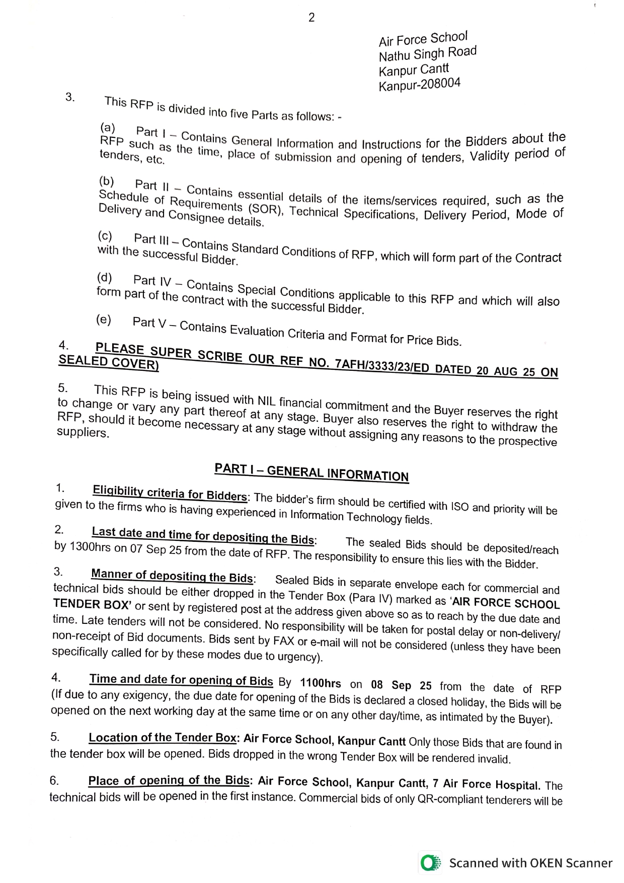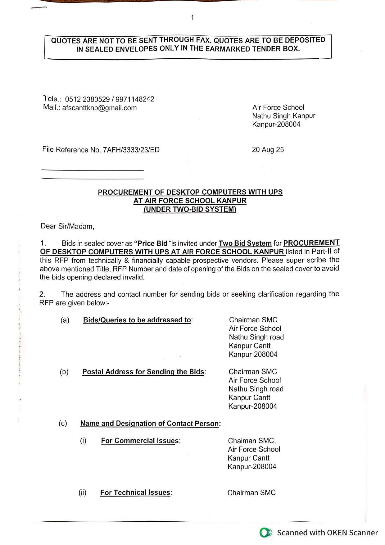 Invitation For Bids For Procurement Of Computers